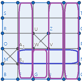 이 그림은 파란색 행을 선택했을때 선택될수 있는 보라색 열이다.