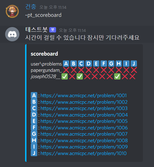 2가지 기능이 있는데 첫번째는 어떤 유저가 어떤 티어 이상의 문제를 풀었을 때 자동 알림을 오게 하는 걸 하고 싶었지만 그랬다간 시프트님께 밴 당할 거 같아서 그냥 수동으로 check를 입력했을 때만 업데이트를 하도록 해놨다